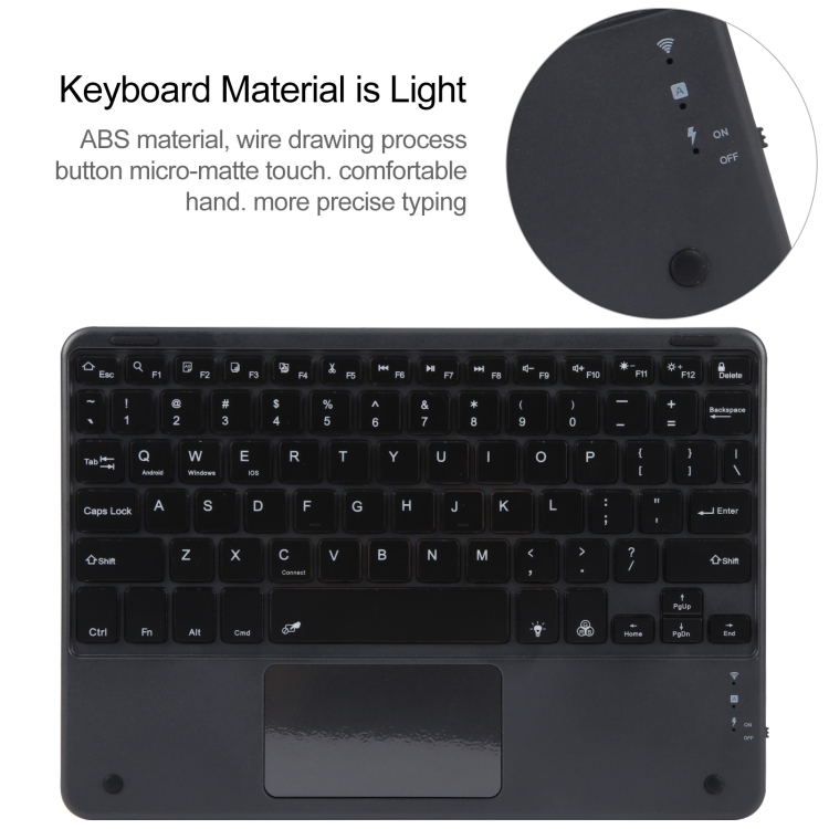 - Soporte giratorio multiángulo; Teclado Bluetooth desmontable con adsorción magnética; Conexión Inalámbrica hasta 10 metros; vida útil de las Teclas de 5 millones de pulsaciones; duración de Batería de hasta 100 horas; Batería de litio con vida estimada de 3 años; corriente de funcionamiento de 500 mA