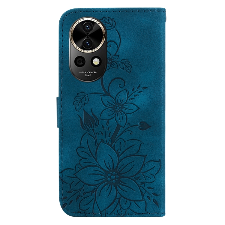 Funda de Cuero con Relieve Lily para Huawei Nova 12 (Azul Oscuro)