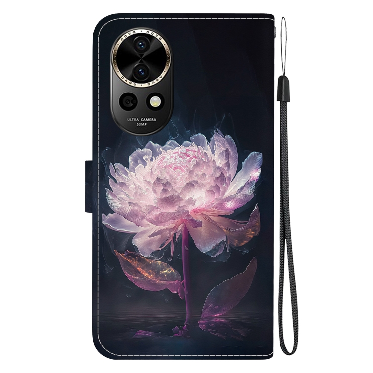 Funda de Cuero para Huawei Nova 12 con Dibujo Coloreado y Textura de Cristal (Peonía Púrpura)