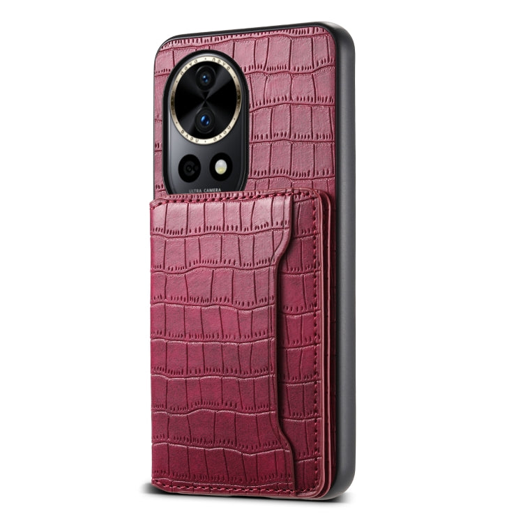 Funda para Huawei Nova 12 Pro con Diseño Bolsa para Tarjetas y Textura de Cocodrilo (Rojo)