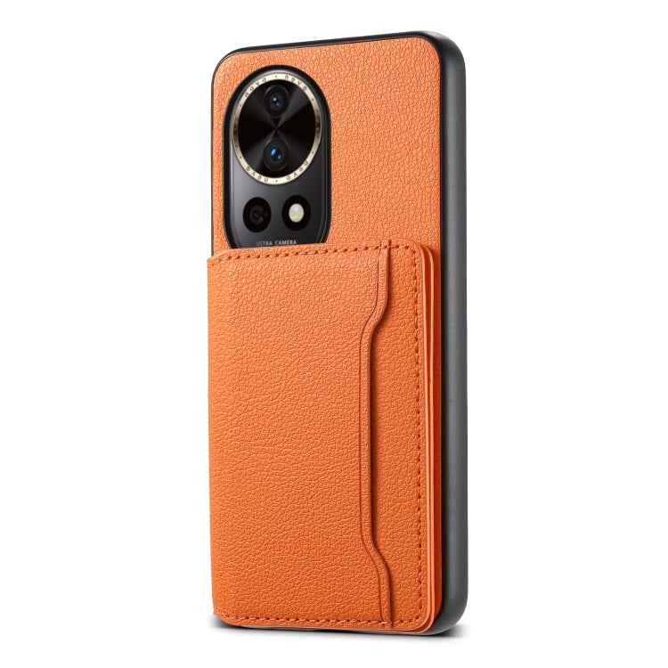 Funda para Huawei Nova 12 Pro con Diseño de Bolsa para Tarjetas y Textura de Pantorrilla (Naranja)