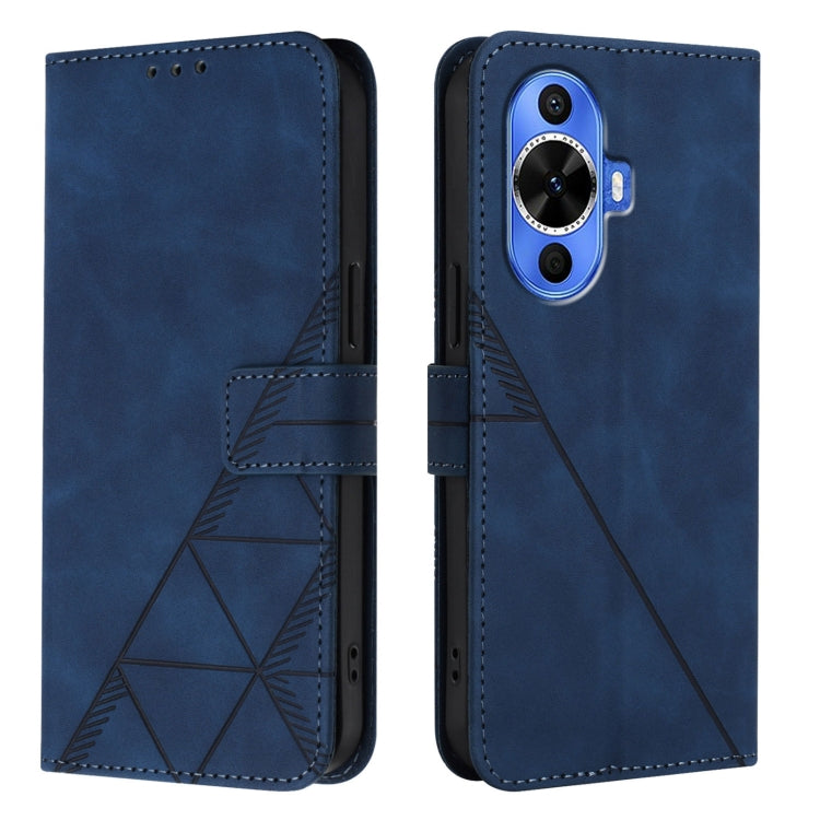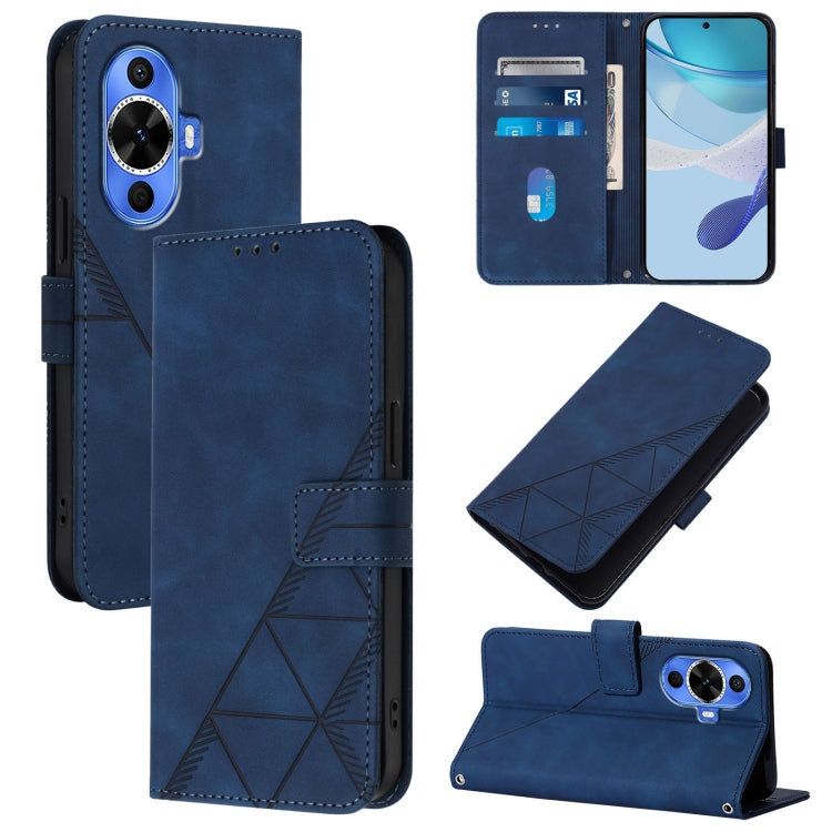 Funda para Huawei Nova 12S 4G Global Crossbody de Cuero con Tapa en Relieve 3D (Azul)