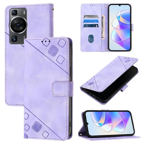 Funda de Cuero Skin Feel para Huawei P60 y P60 Pro en Relieve (Púrpura Claro)