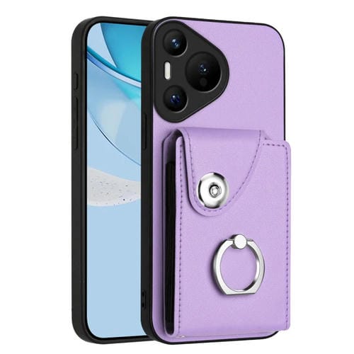 Funda para Huawei Pura 70 con Soporte para Anillo y Bolsa para Tarjeta (Púrpura)
