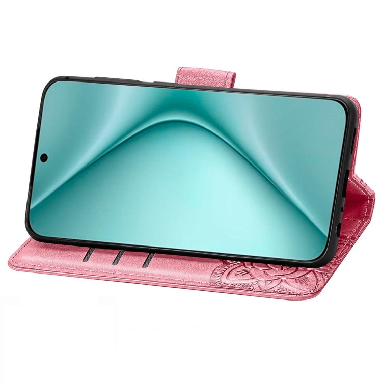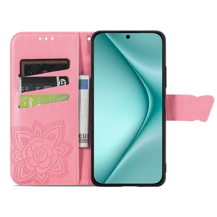 Funda para Huawei Pura 70 de Cuero con Relieve de Flor y Mariposa (Rosa)