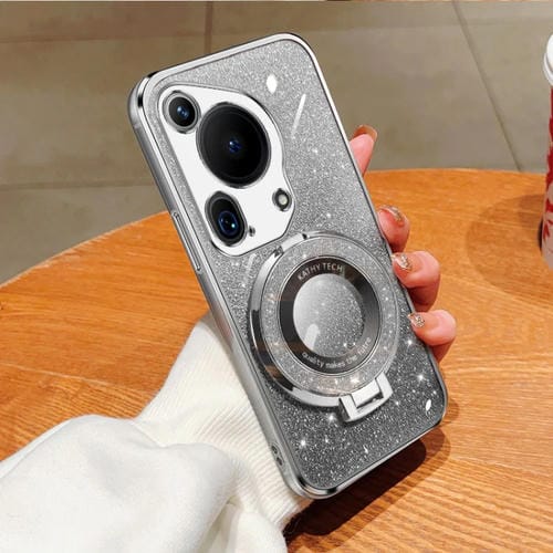 Funda para Huawei Pura 70 TPU con Soporte Redondo y Brillo Degradado (Plateado)