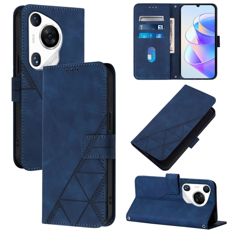 Funda para Huawei Pura 70 Pro Crossbody de Cuero con Tapa en Relieve 3D (Azul)