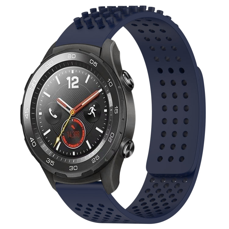 Correa de Reloj de Silicona para Huawei Watch 2 con Puntos 3D Transpirables y Orificios 20mm (Azul Medianoche)