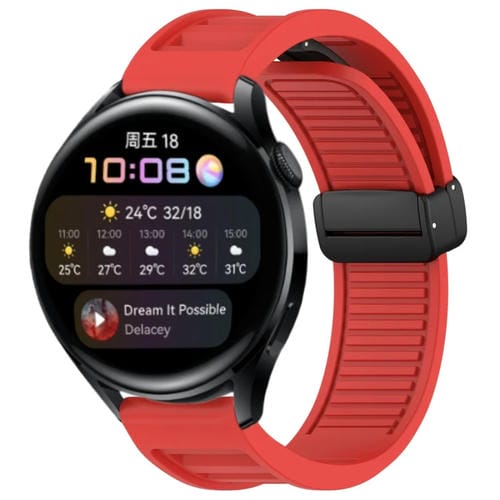 Correa de Silicona para Huawei Watch 3 con Hebilla Magnética Plegable 22mm (Rojo)
