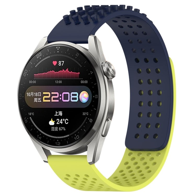Correa de Silicona para Huawei Watch 3 Pro con Puntos 3D Transpirables y Orificios de 22mm (Azul Medianoche + Verde Lima)