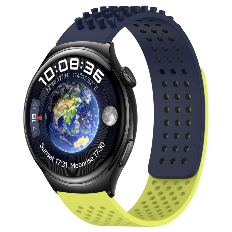 Correa de Silicona para Huawei Watch 4 con Puntos 3D Transpirables y Orificios 22mm (Azul Medianoche + Verde Lima)