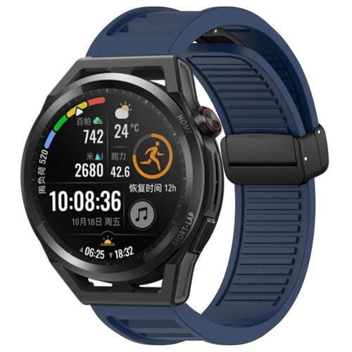 Correa de Silicona para Huawei Watch GT Runner con Hebilla Magnética Plegable 22mm (Azul Medianoche)