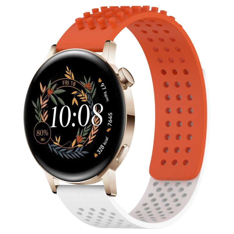 Correa de silicona para Huawei Watch GT3 42mm 20mm con agujeros y puntos 3D transpirables (Naranja + Blanco)