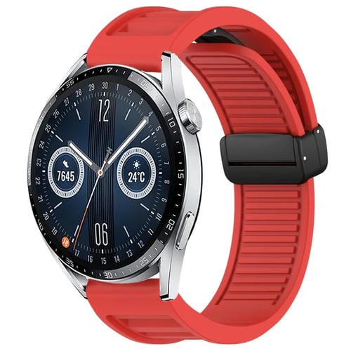 Correa de Silicona para Huawei Watch Gt3 46mm 22mm con Hebilla Magnética Plegable (Rojo)