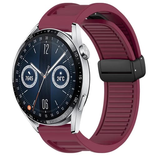 Correa de Reloj Silicona para Huawei Watch GT3 46mm 22mm con Hebilla Magnética Plegable (Rojo Vino)