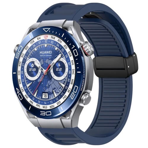 Correa de Silicona para Huawei Watch Ultimate con Hebilla Magnética Plegable 22mm (Azul Medianoche)