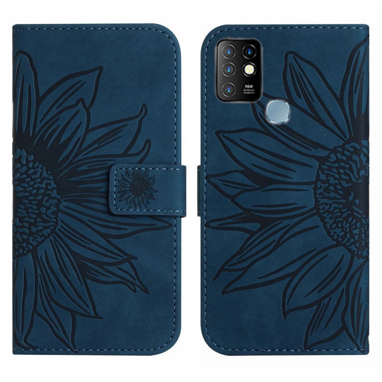 Funda Flip de Cuero para Infinix Hot 10 Skin Feel con Cordón y Diseño Sun Flower (Azul Tinta)
