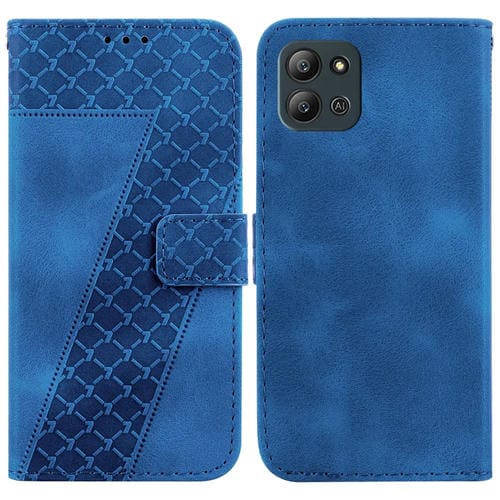 Funda para Infinix Hot 11 2022 de Cuero en Relieve en Forma de 7 (Azul)