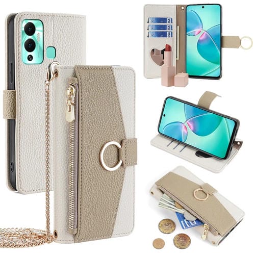 Funda de Cuero Crossbody para Infinix Hot 12 Play con Textura Litchi (Blanco)