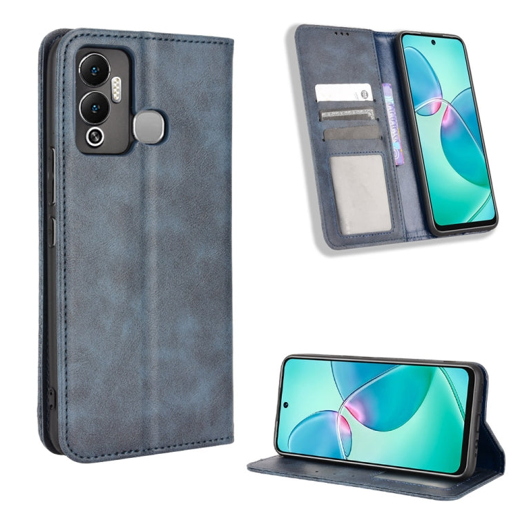 Funda de Cuero para Infinix Hot 12 Play con Textura Retro y Hebilla Magnética (Azul)