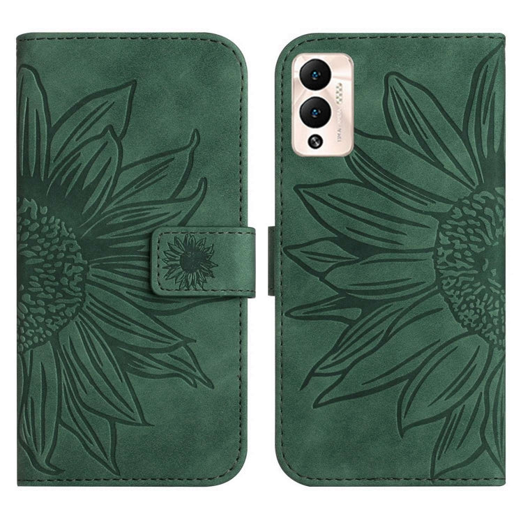 Funda Flip de Cuero para Infinix Hot 12 Play Skin Feel con Cordón y Patrón Girasol (Verde)