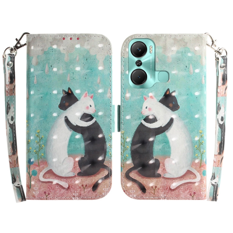 Funda de Cuero para Infinix Hot 12 Pro con Tapa Horizontal y Diseño 3D (Gato Blanco y Negro)
