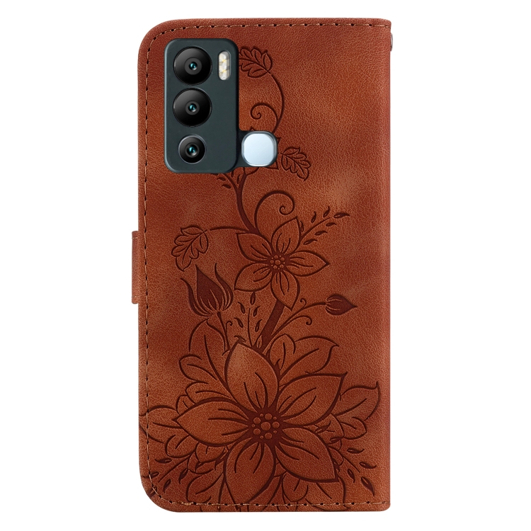 Funda de Cuero en Relieve para Infinix Hot 12I Lily para Teléfono (Marrón)