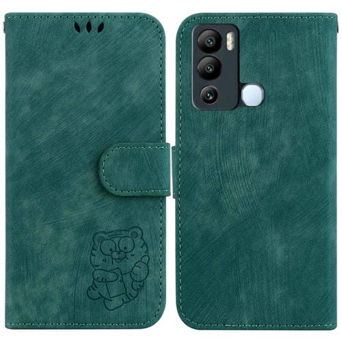 Funda de Cuero En Relieve para Infinix Hot 12I Little Tiger para Teléfono (Verde)