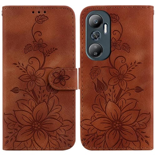 Funda de Cuero En Relieve para Infinix Hot 20 Lily (Marrón)