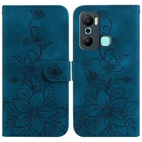 Funda de Cuero En Relieve para Infinix Hot 20 Play Lily (Azul Oscuro)
