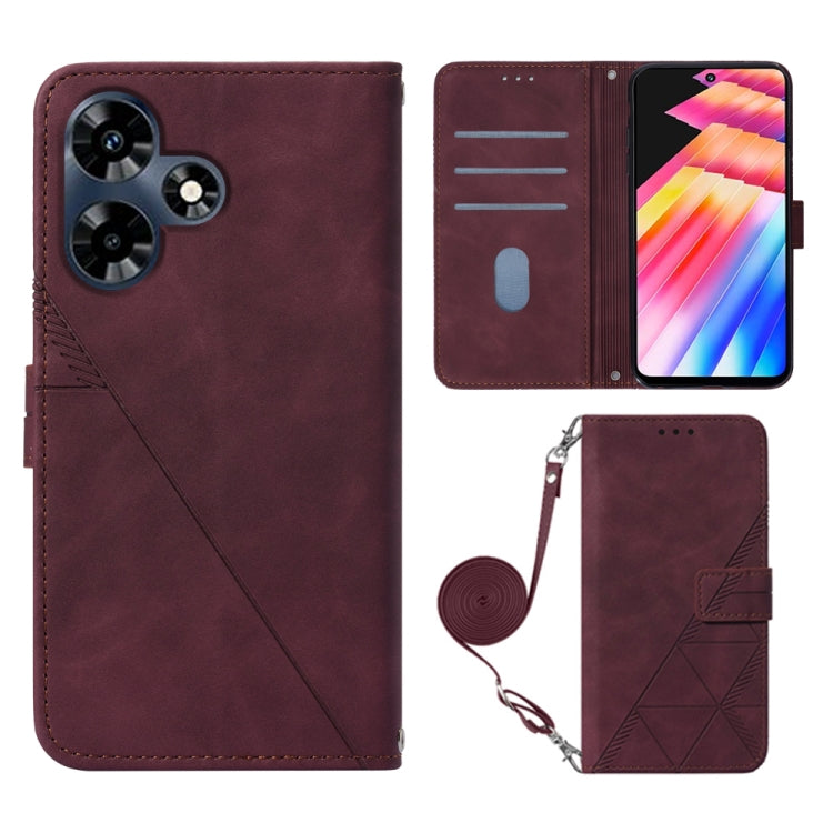 Funda de Cuero Crossbody 3D con Tapa para Infinix Hot 30 4G / X6831 (Rojo Vino)