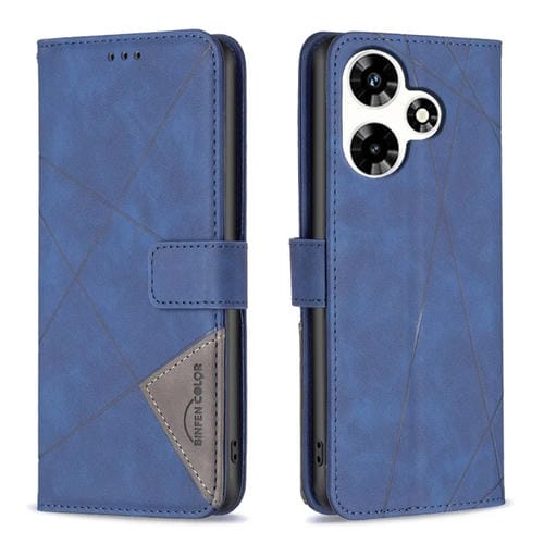 Funda para Teléfono Infinix Hot 30 Cuero Textura de Rombo Hebilla Magnética (Azul)