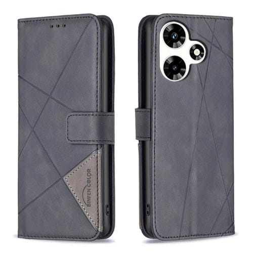Funda para Infinix Hot 30 de Cuero con Textura de Rombo y Hebilla Magnética (Negro)