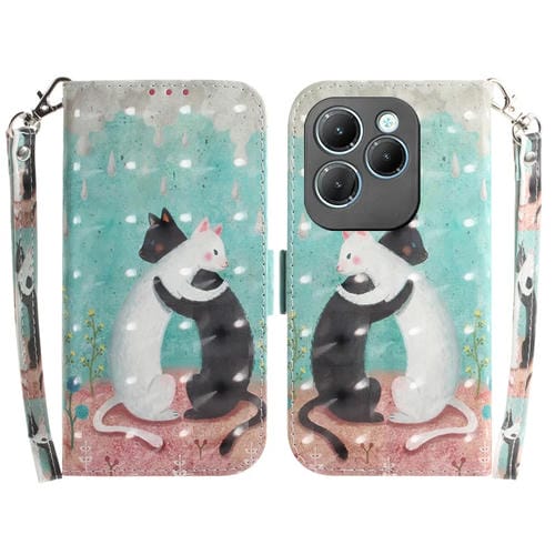 Funda de Cuero para Infinix Hot 40/40 Pro con Tapa Horizontal y Diseño 3D (Gato Blanco Negro)