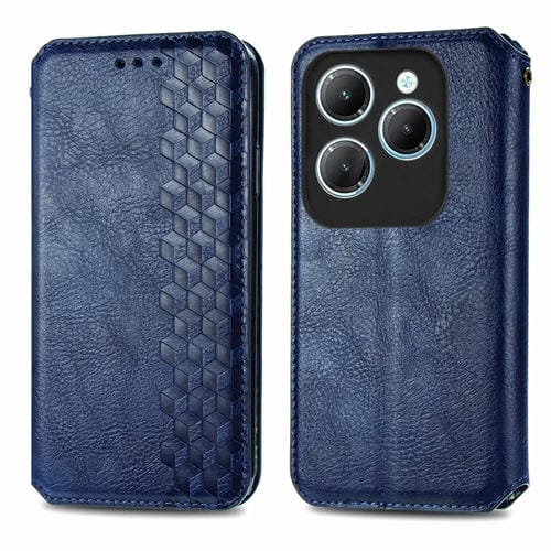 Funda de Cuero Magnético Prensado para Infinix Hot 40 4G Cubic Grid (Azul)
