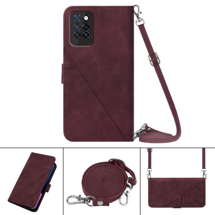 Funda de Cuero En Relieve 3D Crossbody para Infinix Note 10 Pro (Vino Rojo)