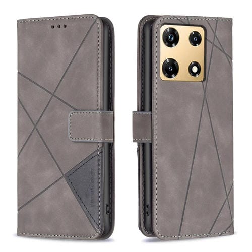 Funda para Infinix Note 30 Pro de Cuero con Textura de Rombo y Hebilla Magnética (Gris)