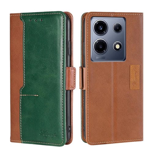 Funda de Cuero para Infinix Note 30 Vip 5G con Hebilla Lateral y Contraste (Marrón Oscuro + Dorado)