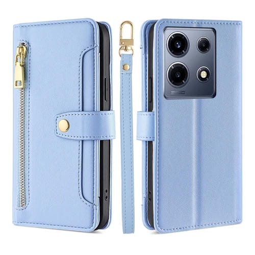 Funda de Cuero Cross-Body con Zipper para Infinix Note 30 Vip 5G Lite (Azul)