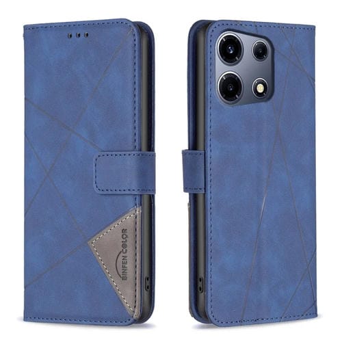 Funda de Cuero para Infinix Note 30 Vip con Textura de Rombo y Hebilla Magnética (Azul)