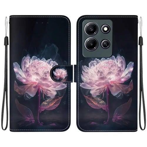 Funda de Cuero para Infinix Note 30I con Dibujo Coloreado y Textura de Cristal (Peonía Púrpura)