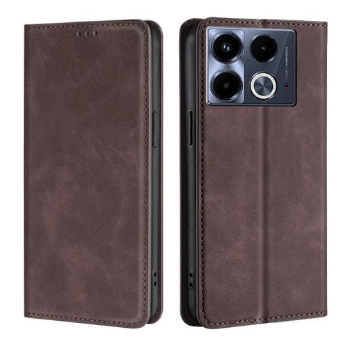Funda de Cuero Magnética para Infinix Note 40 4G Skin Feel (Marrón Oscuro)