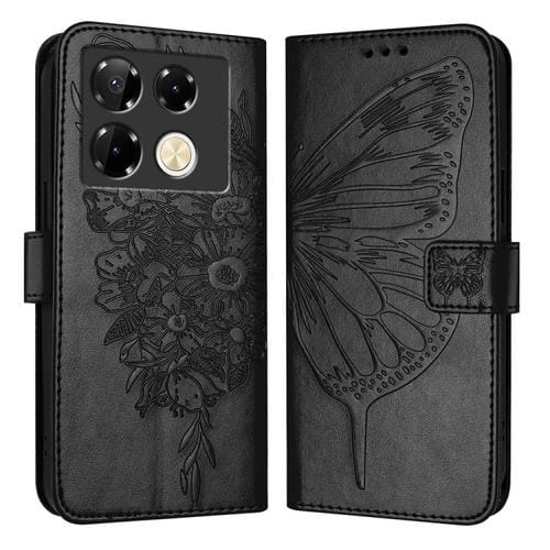 Funda de Cuero para Infinix Note 40 Pro 4G con Mariposa en Relieve (Negro)