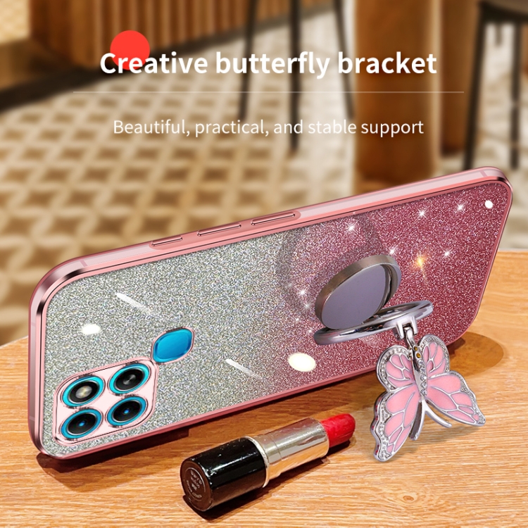 Funda TPU para Infinix Smart 6 con Soporte de Mariposa y Brillo Degradado (Rosa)