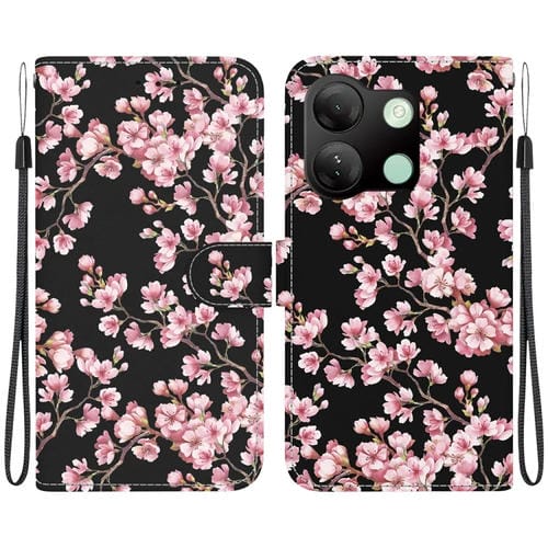 Funda de Cuero para Infinix Smart 7 HD con Dibujo Coloreado y Textura de Cristal (Flor de Ciruelo)