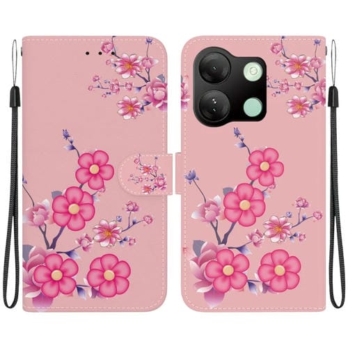 Funda de Cuero para Infinix Smart 7 HD con Dibujo Coloreado y Textura de Cristal (Flores de Cerezo)