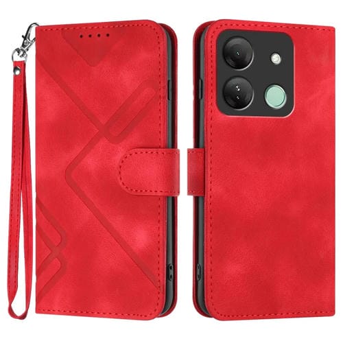 Funda de Cuero para Infinix Smart 7 HD con Patrón Line Skin Feel (Rojo)