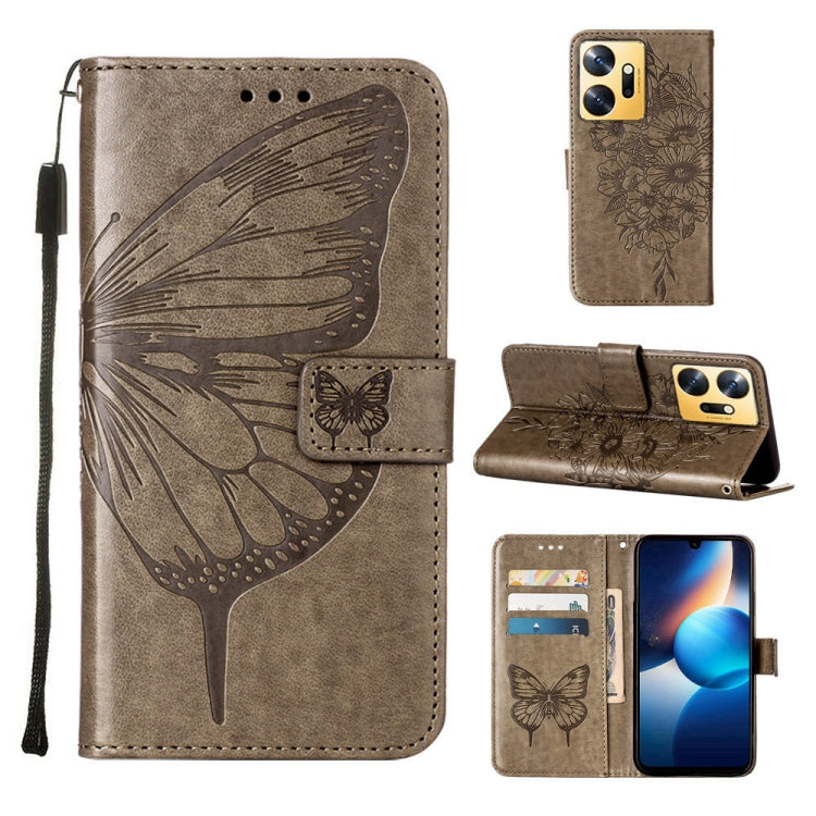 Estuche para Teléfono Infinix Zero 20 X6821 Cuero con Mariposa en Relieve (Gris)