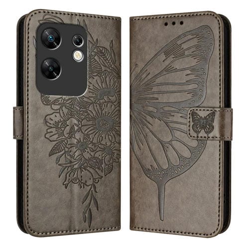 Funda de Cuero para Infinix Zero 30 4G con Mariposa en Relieve (Gris)