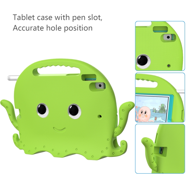 Funda para iPad 10.2 2019/2020 Eva + PC con Correa Estilo Octopos (Hierba Verde)